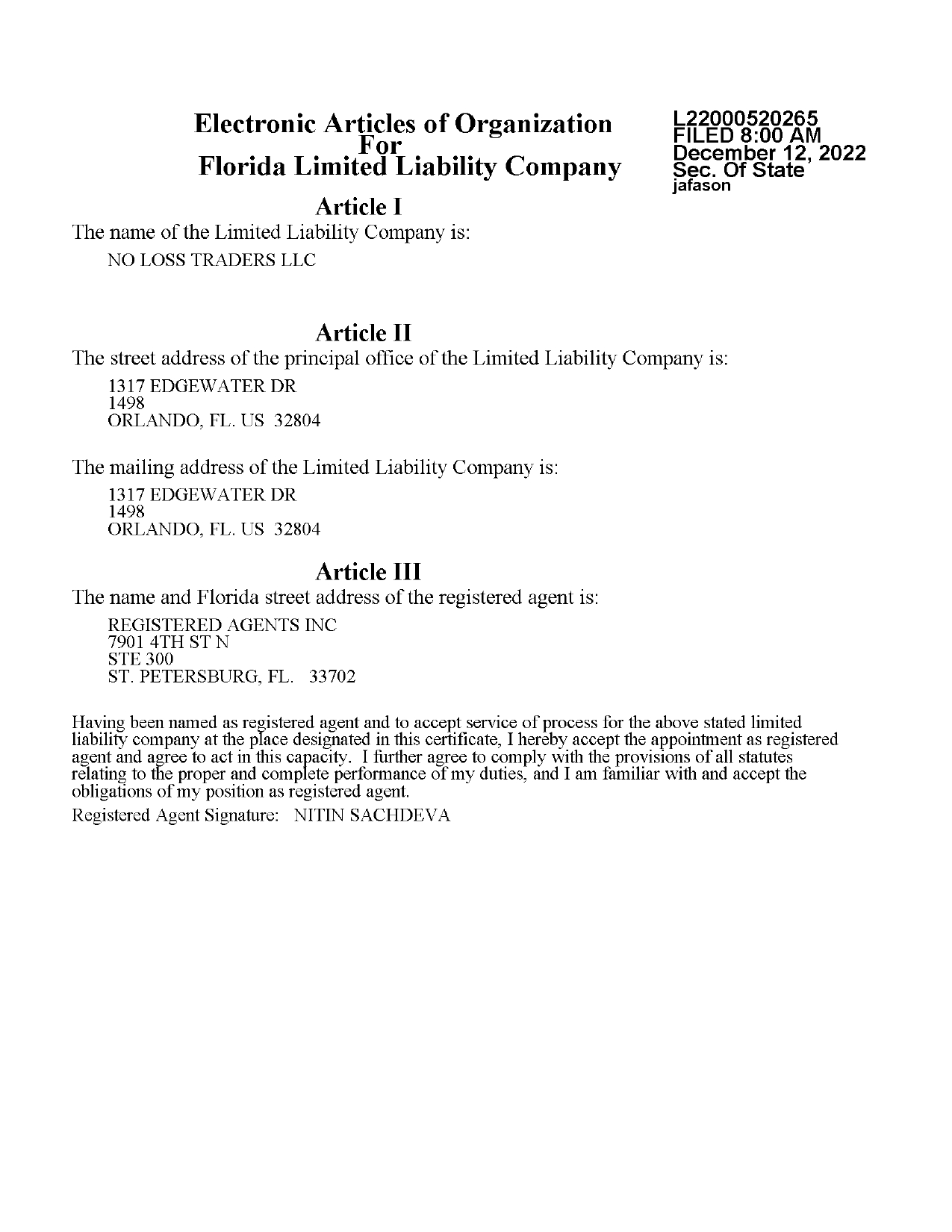 Corporate Address:- Door 1498 1317 EdgeWater Orlando Florida 32804.